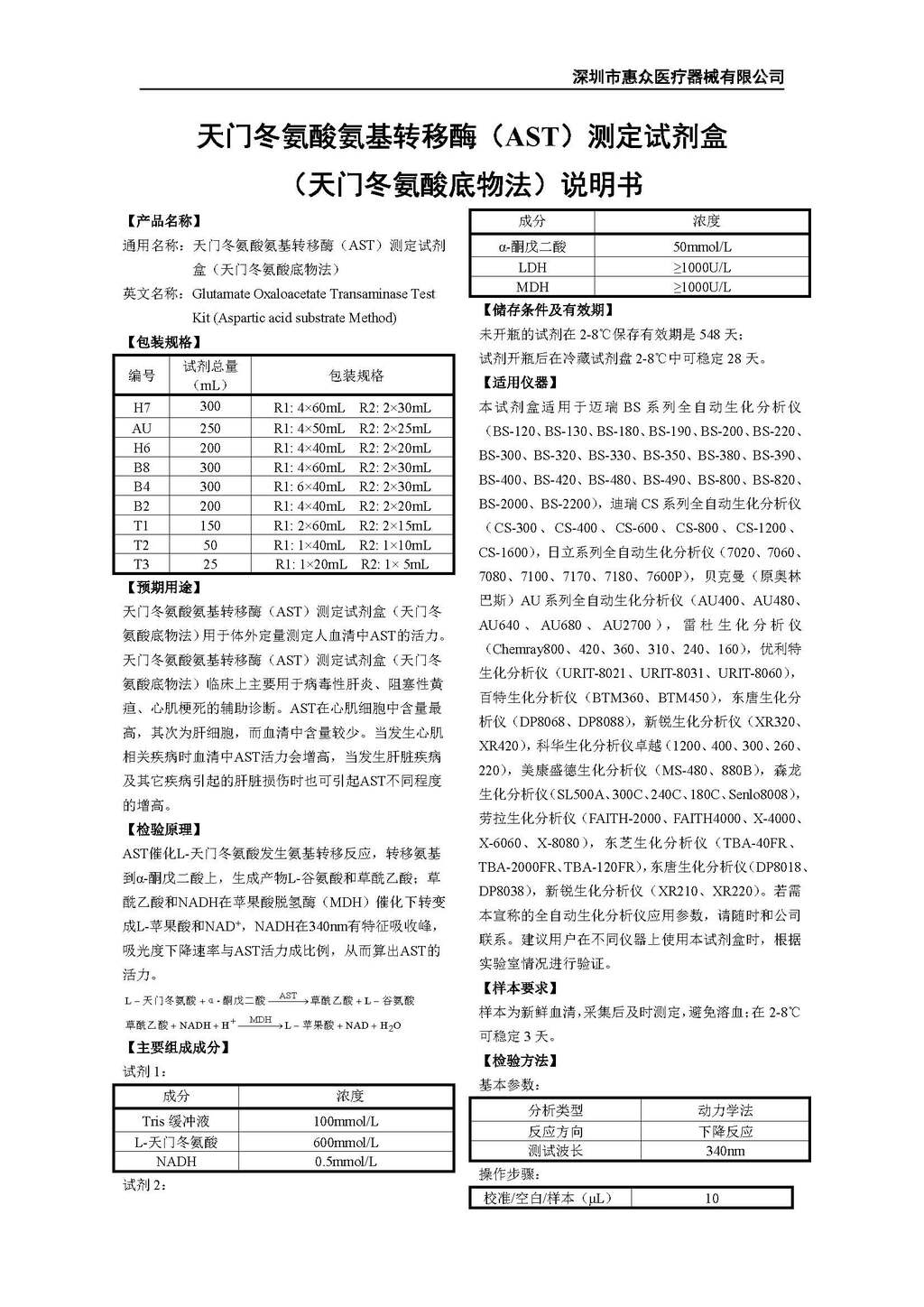 • 天門冬氨酸氨基轉移酶(AST)測定試劑盒(天門冬氨酸底物法)