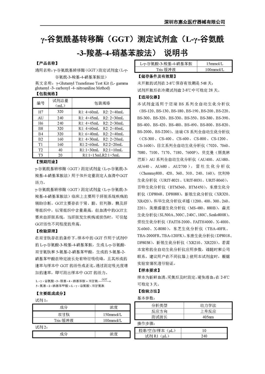 • γ-谷氨酸轉(zhuǎn)移酶(GGT)測(cè)定試劑盒(底物法)