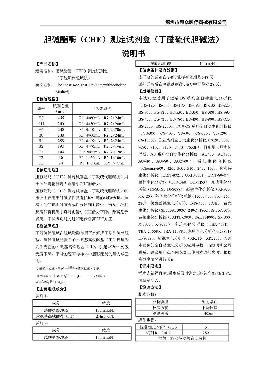 • 膽堿酯酶(CHE)測定試劑盒(丁酰硫代膽堿法)