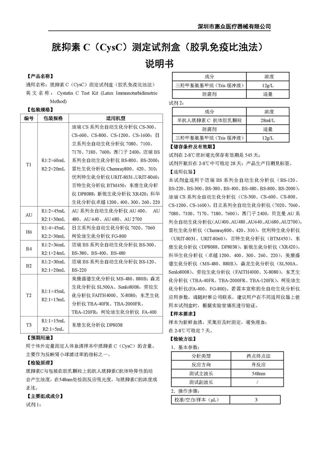 • 胱抑素C(Cys C)測定試劑盒(膠乳免疫比濁法)
