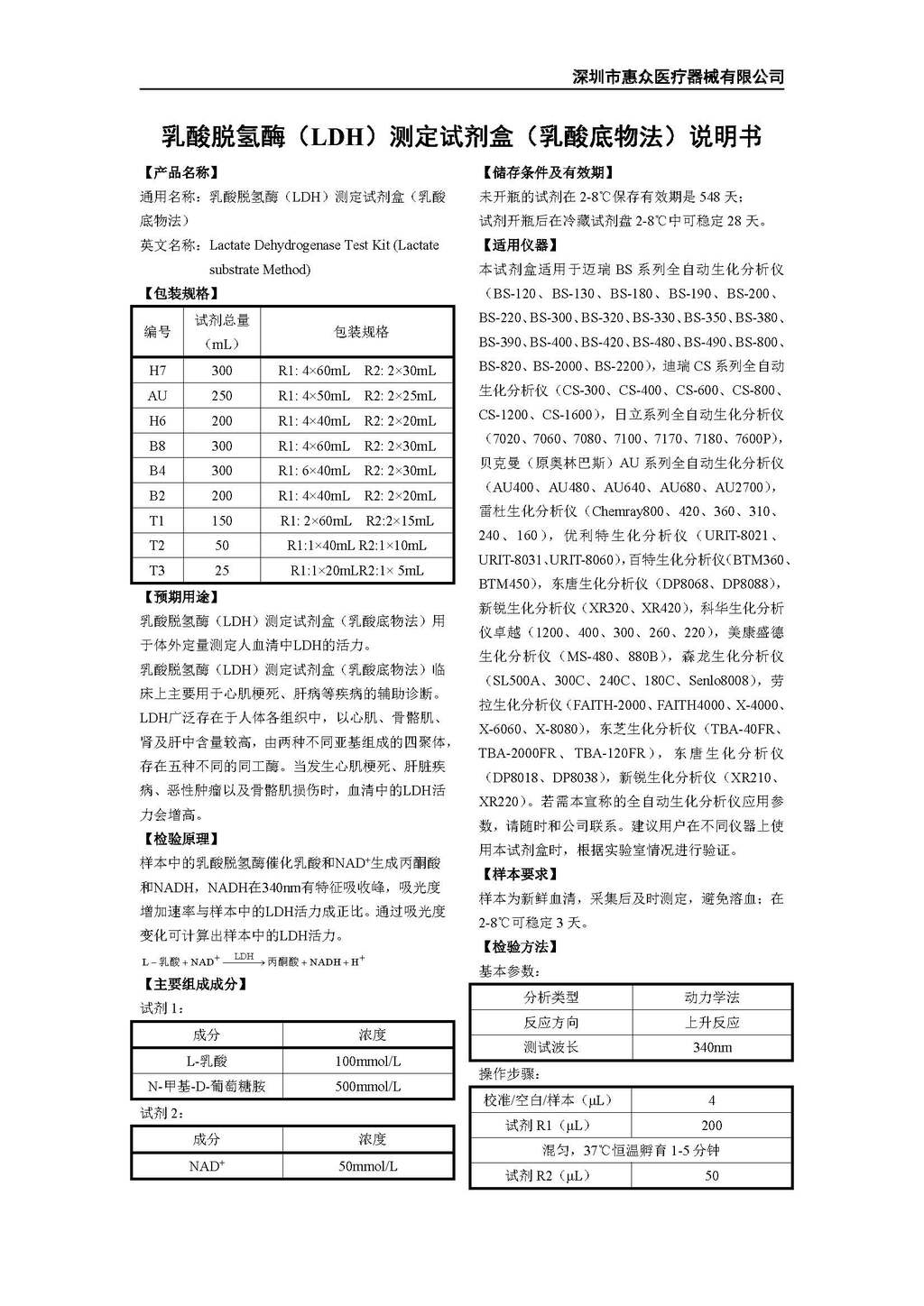 • 乳酸脫氫酶(LDH)測定試劑盒(乳酸底物法)