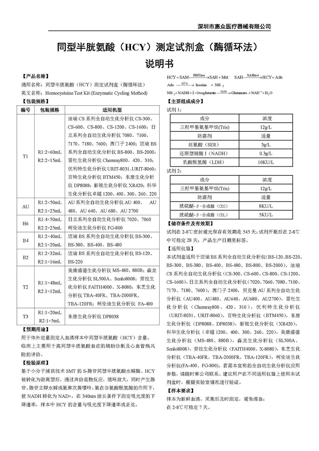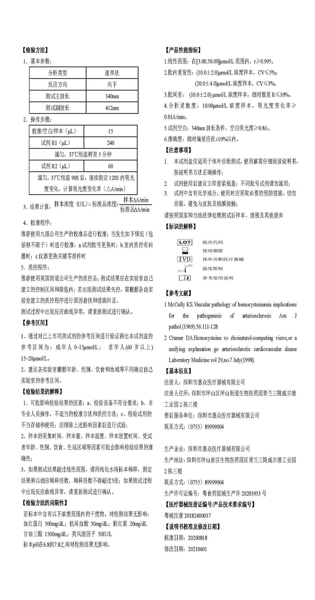 • 同型半胱氨酸(HCY)測定試劑盒(酶循環法)