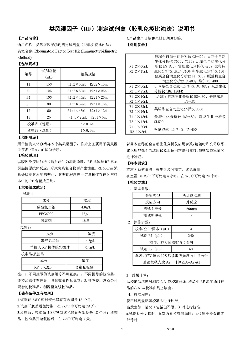 • 類風濕因子(RF)測定試劑盒(乳膠免疫比濁法)