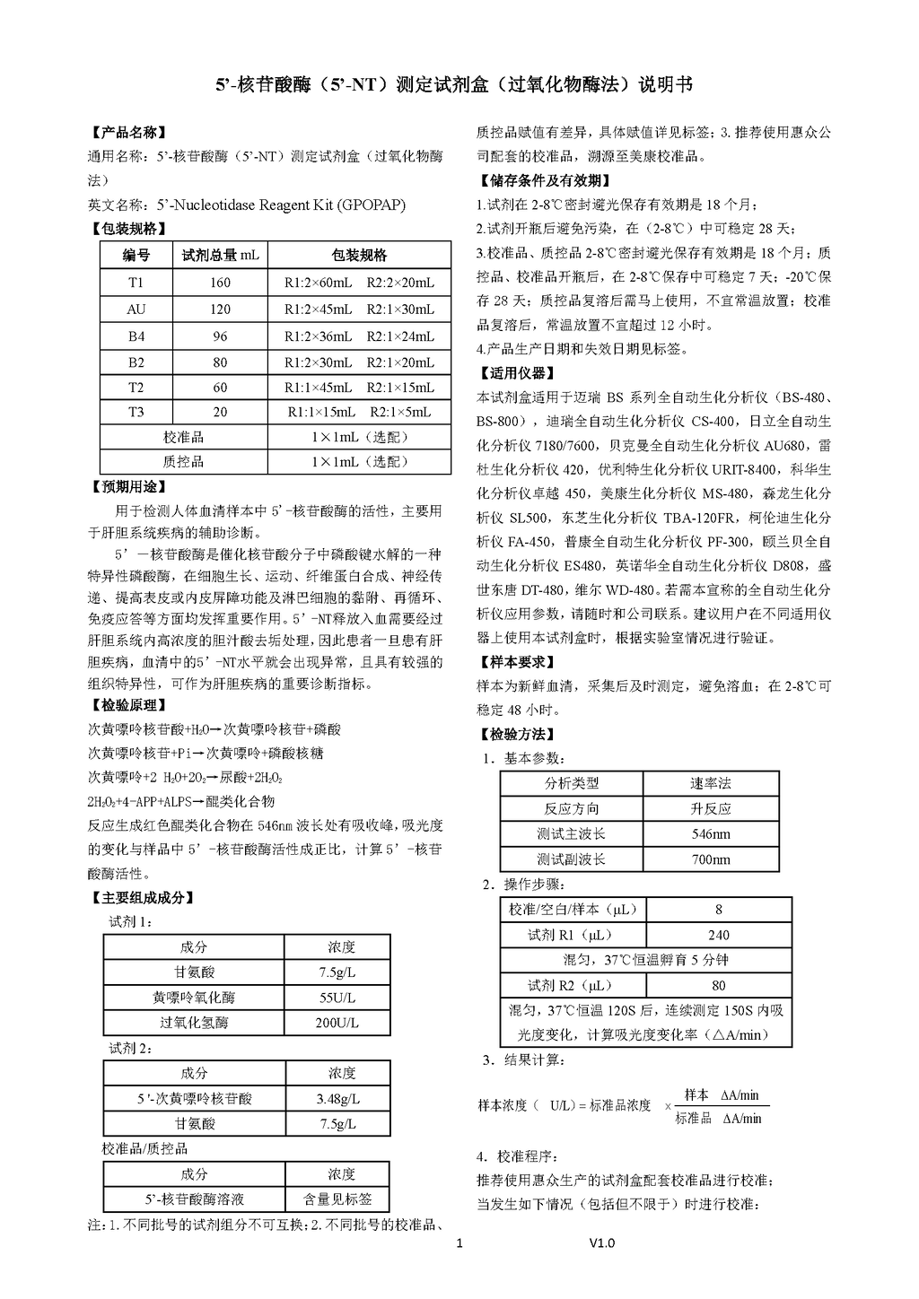 • 5‘-核苷酸酶(5’-NT)測定試劑盒(過氧化酶法)